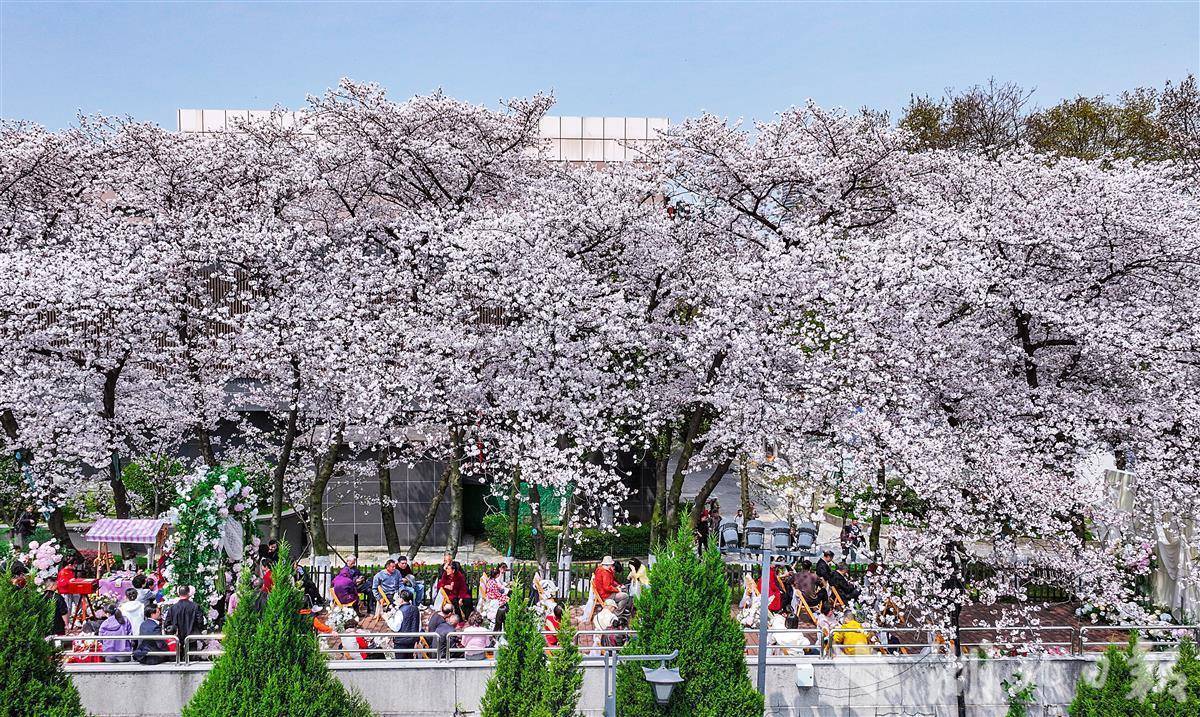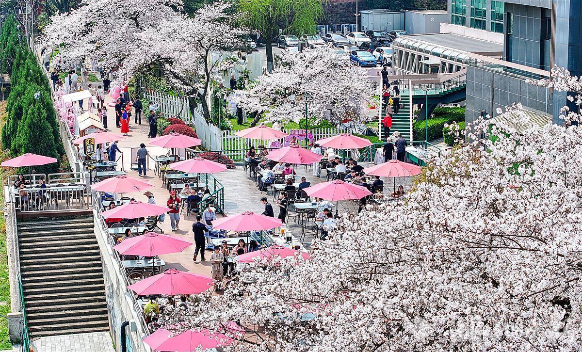 3月28日中午,武汉晴川阁(晴川沐日栈房后院的长江畔)下,樱花如云似雪,两处好意思好在此同期启幕。