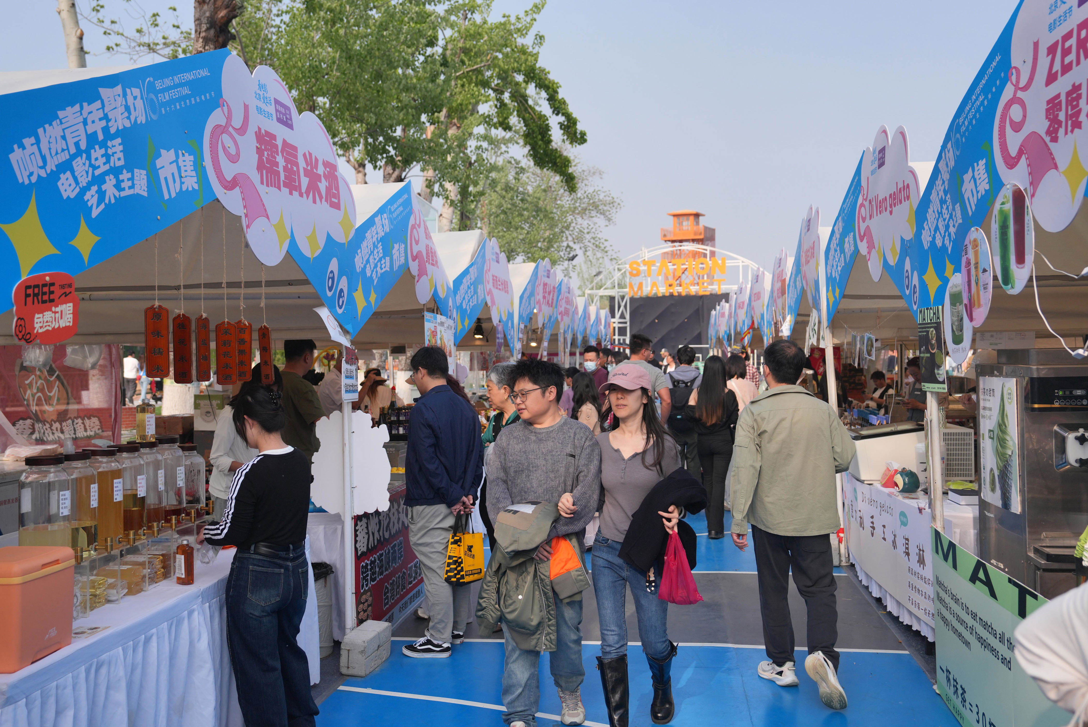 “本年咱们市集的摊位数目和品性齐创下积年之最。入驻商户齐进程了咱们的严格筛选,不仅有北京当地的,也有京外一些特质商户,但愿能作念出最有体验感、氛围感的市集。”市集相干厚爱东谈主宋芳雪先容,电影节本领,园区内的客流量能达到3万东谈主次。