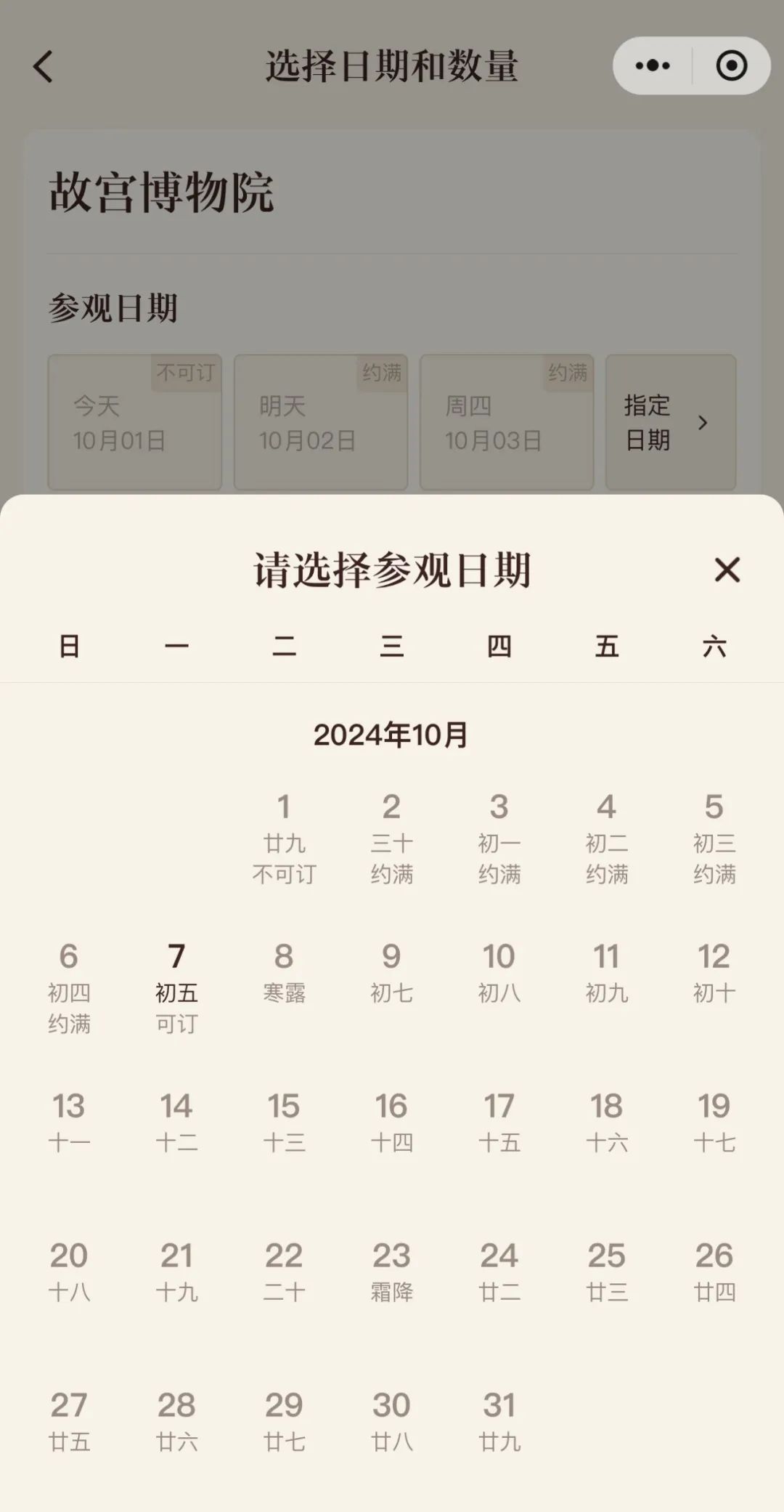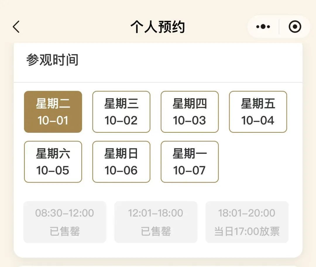 故宫博物院小步调浮现,10月1日至6日参不雅预约已约满。
