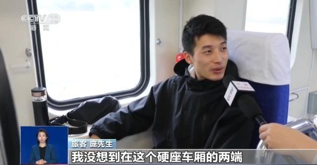 游客 庞先生:我没念念到在这个硬座车厢的两头还有单东说念主单座,我亦然第一次坐。座位前边有一个小桌板,不错放平板之类的东西。