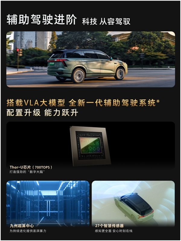 全新蓝山智能进阶版的中枢亮点在于搭载了“听得懂、会想考、能谈心”的VLA大模子,通过语音控车、CoT推理卡片、驻扎性驾驶、罕见场景和会四大中枢功能,构建从感知到实施的智能闭环,让赞助驾驶从“机械实施”升级为“东谈主性和会”。一句“小魏同学,远隔大车”,系统便能主动酌量旅途拉开安全距离;驻扎性驾驶如同告诫丰富的老司机提前预判风险;濒临施工区、窄路等复杂场景,车辆也能安宁顶住;CoT推理卡片更将驾驶方案经由及时可视化,让每一次操作皆透明可感。同期,为保险VLA大模子运动出手,新车配备算力达700 TOPS的Thor-U芯片与27颗聪敏传感器。