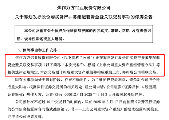 3月3日午间,焦作万方(000612)公告称,拟以刊行股份购买财富的方式,购买杭州锦江集团有限公司(以下简称“锦江集团”)等股东所抓有的开曼铝业(三门峡)有限公司(以下简称“三门峡铝业”)100%股权,同期召募配套资金。公司已于今日早间央求临时停牌,预测停牌不进取10个往异日。钭正刚是锦江集团的实控东说念主。