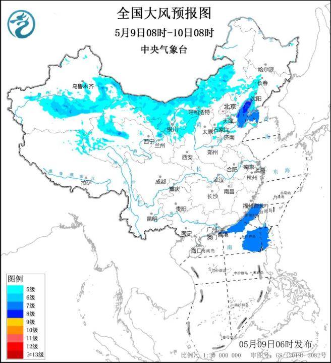 中央表象台5月9日06时延续发布大风蓝色预警: