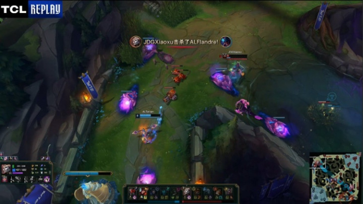 [6:32]Flandre雷克塞救助中路在河说念草丛1v3被杀,Xiaoxu亚恒再拿一个东说念主头。
