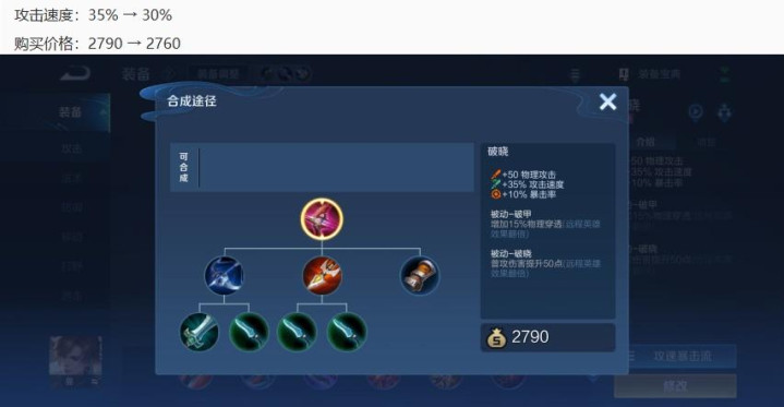 破晓收缩:攻速辩驳5%,价钱辩驳30金币。