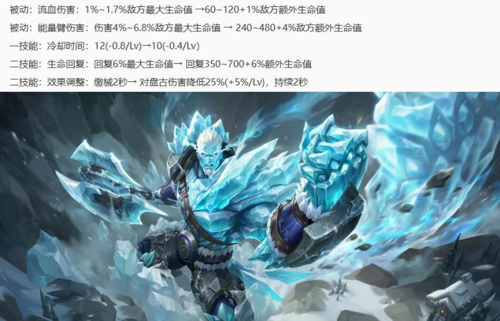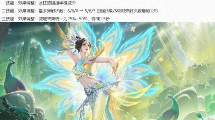 甄姬收缩:1妙技的冰柱回击范围缩小,2妙技的弹射次数在前期减少一次,在后期加多一次,大招掷中第一打算时的延缓从90%辩驳至25%~50%,执续时分加多0.5秒,大招水域的延缓时分镌汰0.5秒。