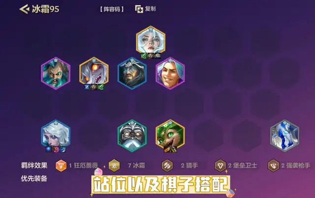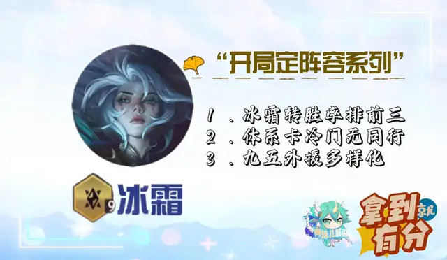 冰霜羁绊前中期都尽头强势,相宜连胜开局上9去找外助,有转的7冰霜就能吃分了,吃鸡则需要9冰霜。