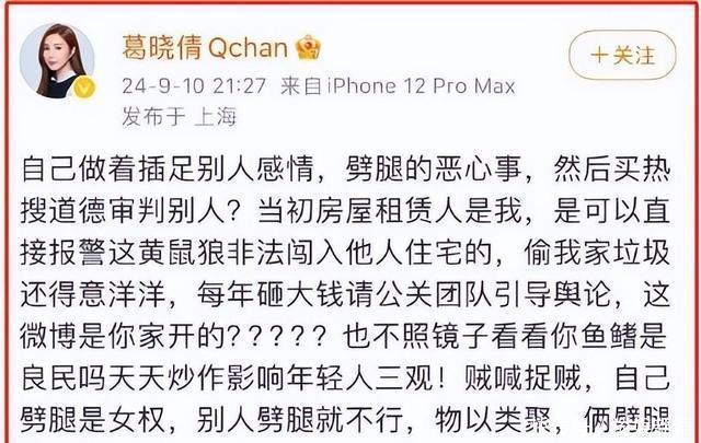 这事还没完,张雨绮前夫的前女友葛晓倩也跳出来反击了。她在外交平台上发文说:"贼喊捉贼,有些东说念主我方作念过的事情却要栽赃给别东说念主。"这话天然莫得平直点名, 但公共皆知说念她说的是谁。