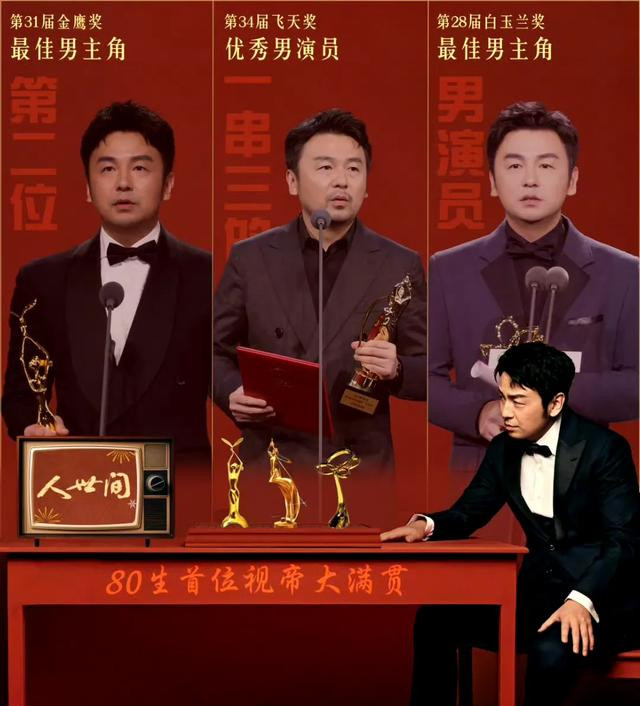 他照旧从飞天和金鹰奖取消双黄蛋以来,第一个大满贯的演员,他的白玉兰照旧两届合一的视帝,是史上第二位“一串三”的演员!