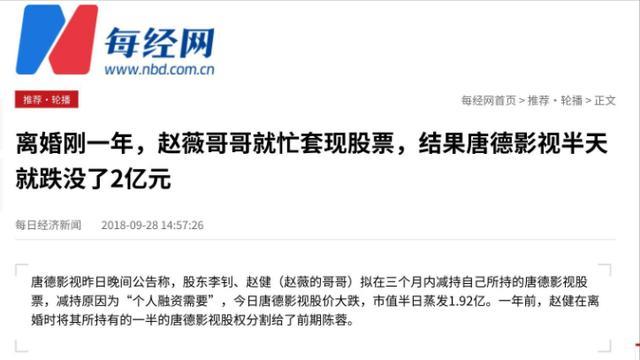2.A股再现天价离异案:赵薇哥哥离异 妃耦分5.2亿元股票.网