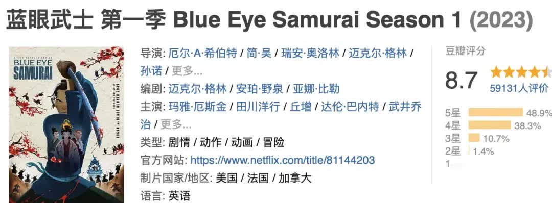 如若你心爱复仇题材和大女主戏,那么Netflix的高分动画剧集《蓝眼武士》竣工值得一看。