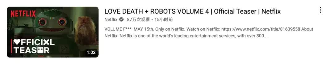 时隔三年,Netflix的顶流动画《爱,死一火和机器东谈主》第四季终于官宣定档,5月15日全集上线,一共十集。