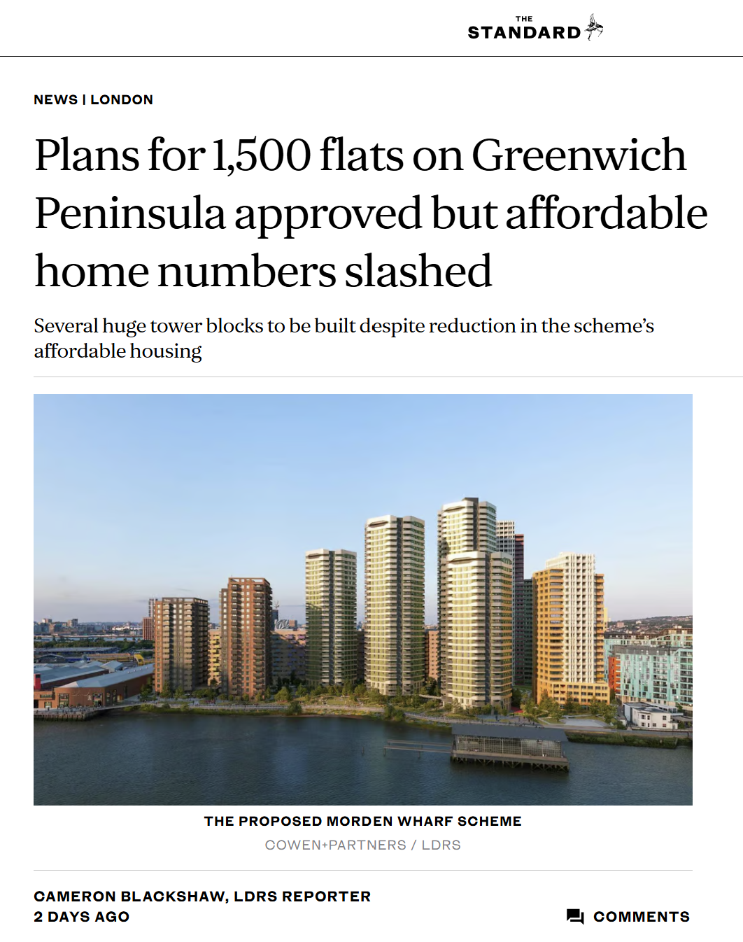 4月15日,位于伦敦格林威治半岛的Morden Wharf住宅拓荒景色新决策,现已赢得批准。