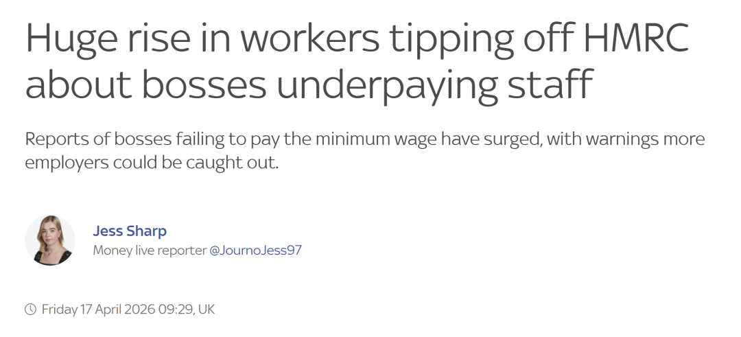 ● 英国越来越多职工开动举报老板少付工资