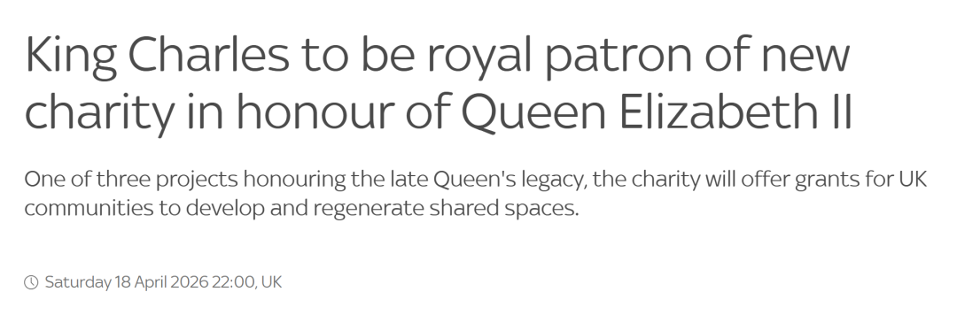 届时,英国政府将建树一个全新的慈善机构——“伊丽莎白女王相信(the Queen Elizabeth Trust)” ,专门用来转头已故女王伊丽莎白二世,英王查尔斯三世将担任王室赞成东谈主。
