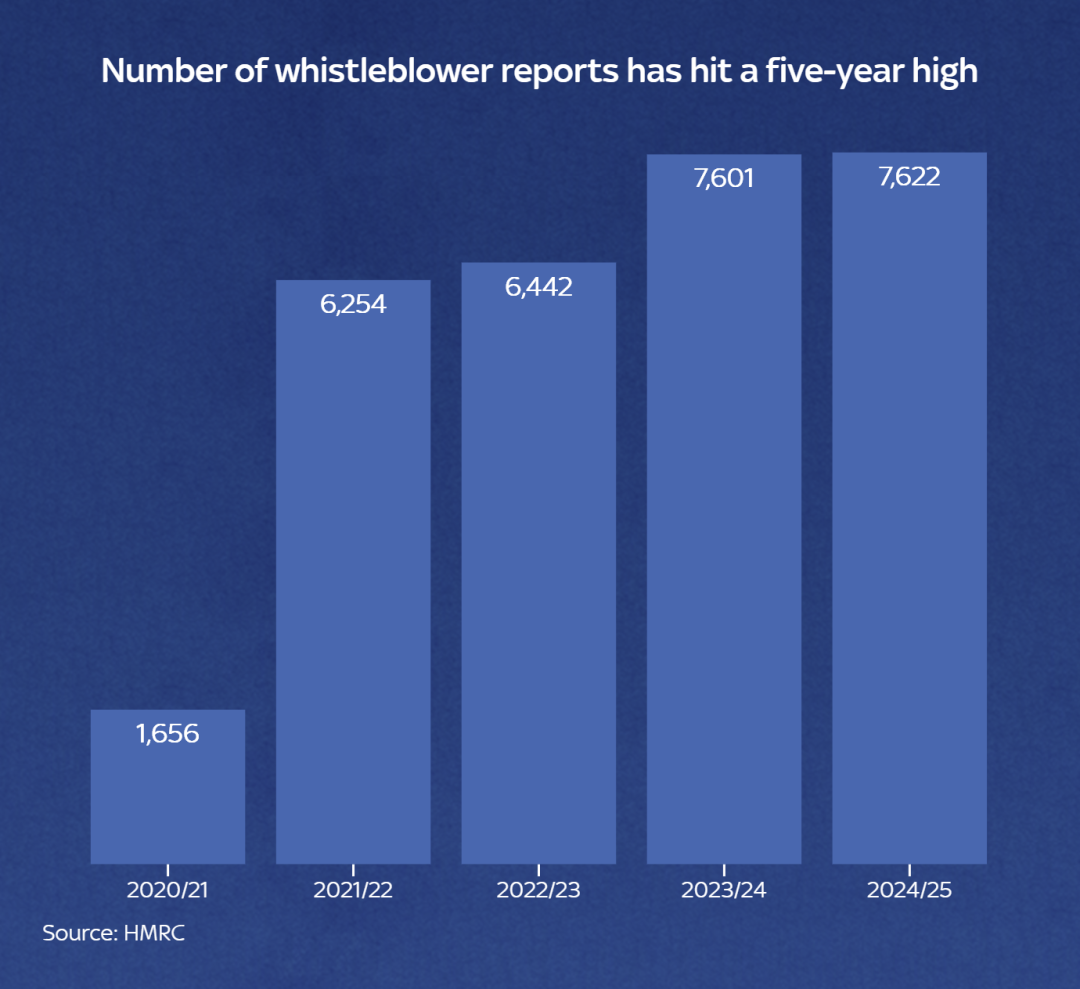 最新数据泄露,2024/25年英国税务海关总署(HMRC)一共收到7622起举报,内容都是老板莫得按照英国最低工资要领向职工支付工资,比2020/21年度大幅加多了360%。