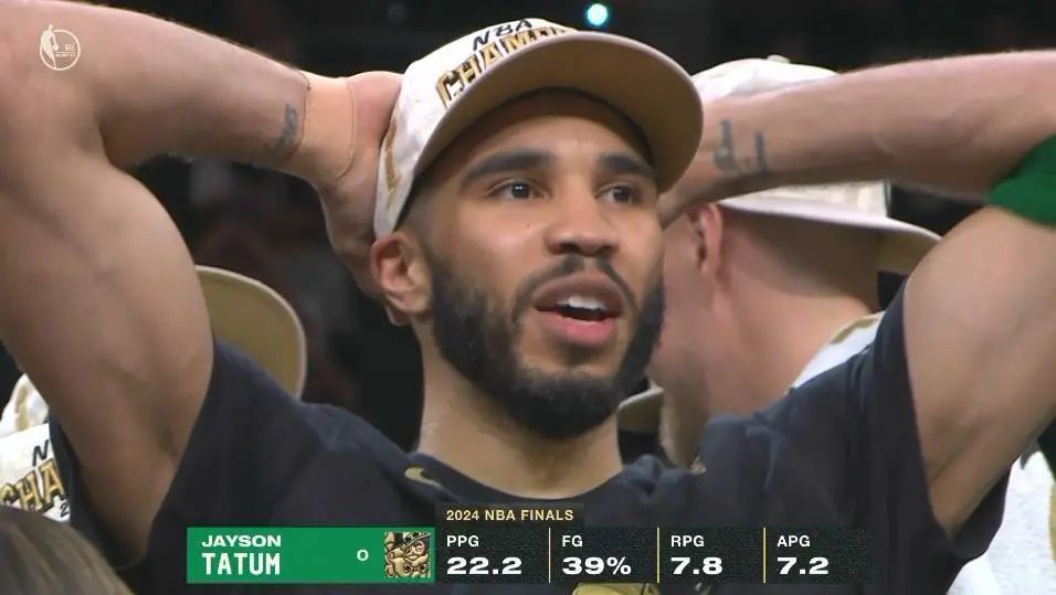 场均22.2分7.8篮板7.2助攻,三项数据领跑全队的杰森-塔图姆,没拿到FMVP。